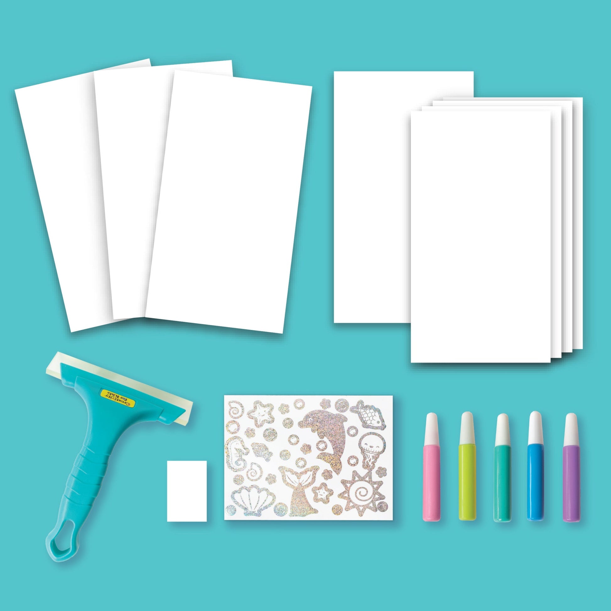 Creativity for Kids - Discover a unique way to paint with Magical Reveal Squeegee Art Mermaid. Works just like magic! Young artists can create abstract art simply by applying dots of paint and using the included squeegee to reveal 3 underwater surprise images. Try different patterns of painting such as zigzag, rainbow, and swirl methods to add texture and effects to your artwork and add the included holographic stickers for an extra special effect. This kit makes the perfect project to inspire children and mermaid lovers.