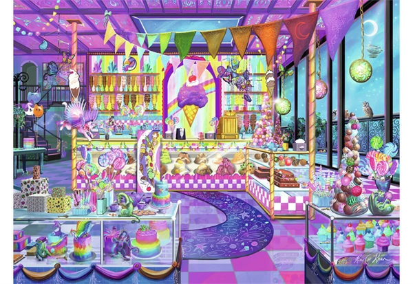 Ravensburger - Which sweet treat would your child like most in this amazing out-of-this-world ice cream and bake shop? This colorful “Stardust Scoops” puzzle features everything from rainbow cakes to towers of donut holes and huge mounds of yummy ice cream. The winged kitty cat is diving for a treat, while the little dragon in the display case adorns itself with icing pearls! Puzzles help develop hand-eye coordination, fine motor skills and problem-solving while delivering hours of relaxing fun!