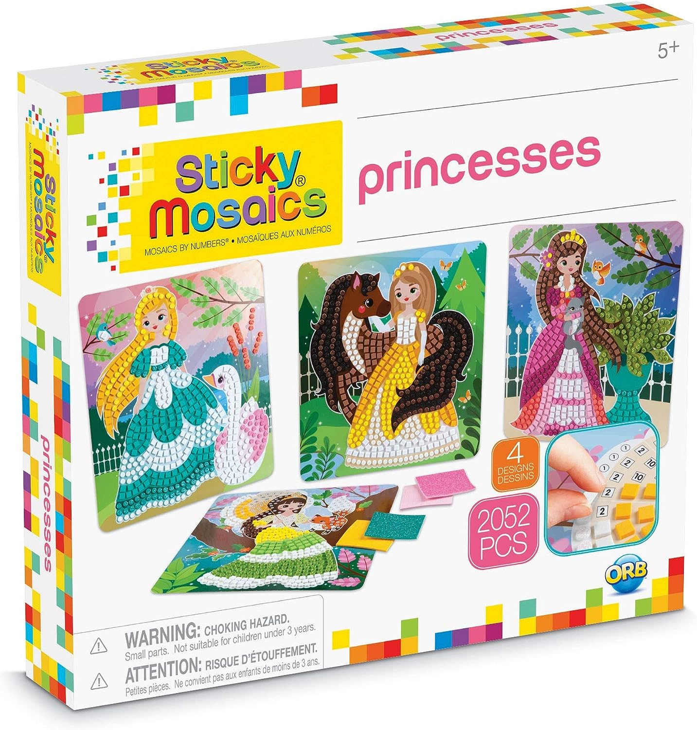 Orb - Make a masterpiece with Sticky Mosaics Princesses! This colorful craft kit is super fun, simple to use, and perfect for at-home or on-the-go entertainment. It’s easy to get great results every time—just peel the tile, stick it on the template and watch the mosaic come to life. There are 4 designs to complete per box.