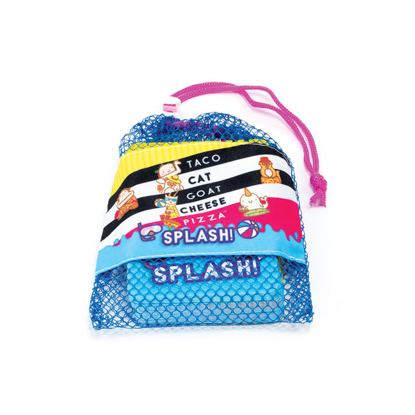 Outset Media - Taco Cat Goat Cheese Pizza SPLASH is making waves! This waterproof version of the wildly popular game is perfect for poolside play, beach days, or any splashy adventure. Featuring hilarious water-themed illustrations like a taco lounging in a floatie or a goat goofing off with a beach ball - this deck is ready to dive into the fun.