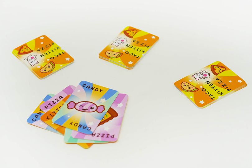 Blue Orange Games - Taco , Kitten , Pizza! These 3 pals are super cute and pop up when you least expect them. They love it when you remember their names and call for them at the right time!