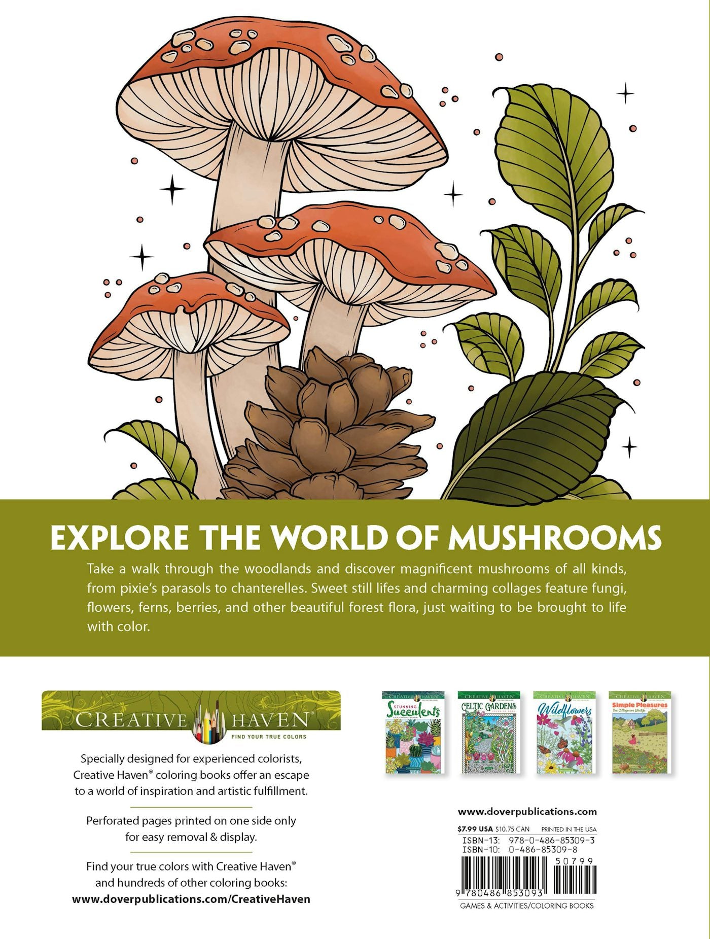 Dover - Embark on a serene woodland journey, and capture the vibrant beauty of magnificent mushrooms. From the whimsical parasols of pixie caps to dainty honey mushrooms and elegant chanterelles, Hannah Konetzki’s debut coloring book presents a fresh interpretation of fungi, portraying enchanting still lifes, captivating collages, and intricate patterns of their symbiotic relationship with berries, ferns, and flowers. These 31 stunning illustrations will inspire your artistic passion.