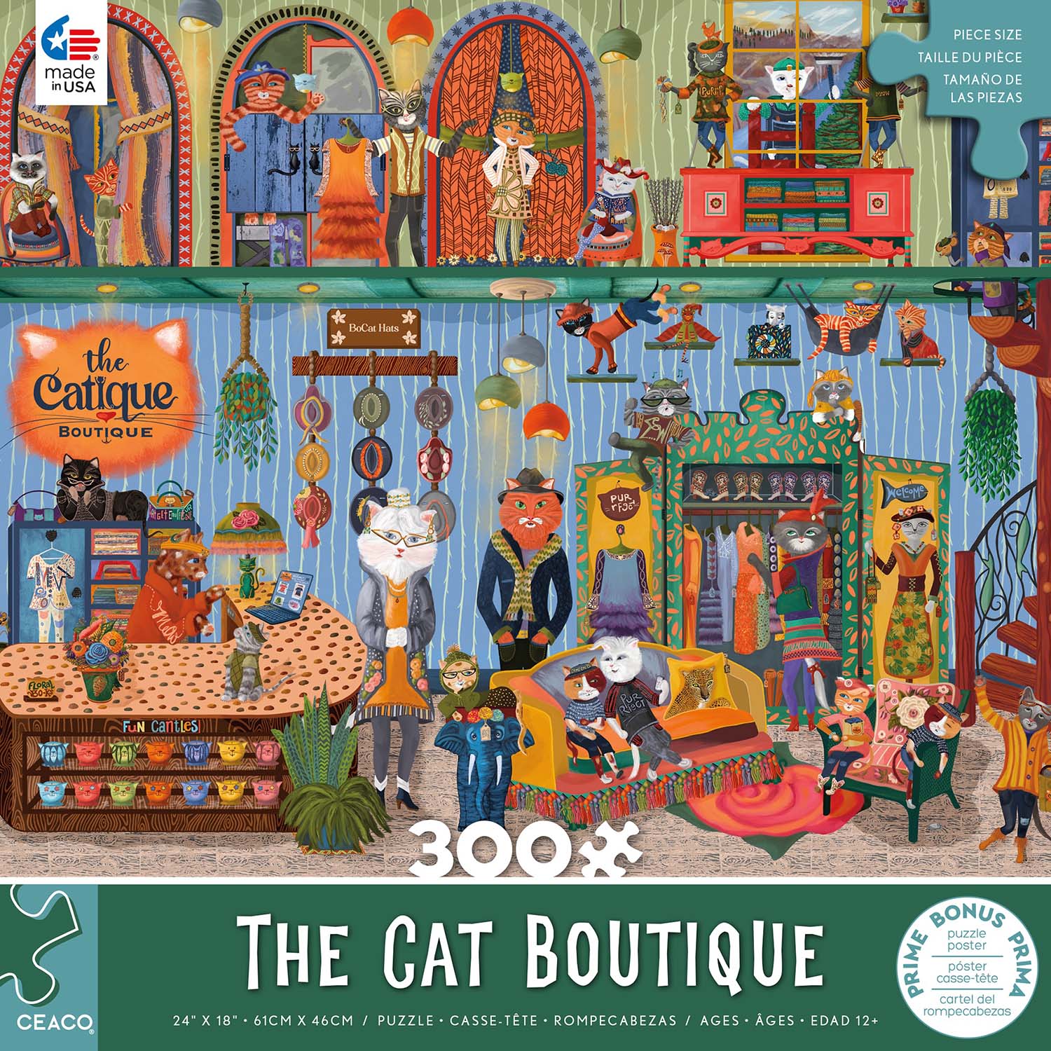 Indulge in the world of feline elegance with The Cat Boutique 300pc puzzle. With 300 intricately crafted pieces made by Ceaco, this puzzle features stunning themes of cats that will captivate and delight all cat lovers. Experience the luxury of a premium product that combines art, literature, and fashion in one masterful puzzle.