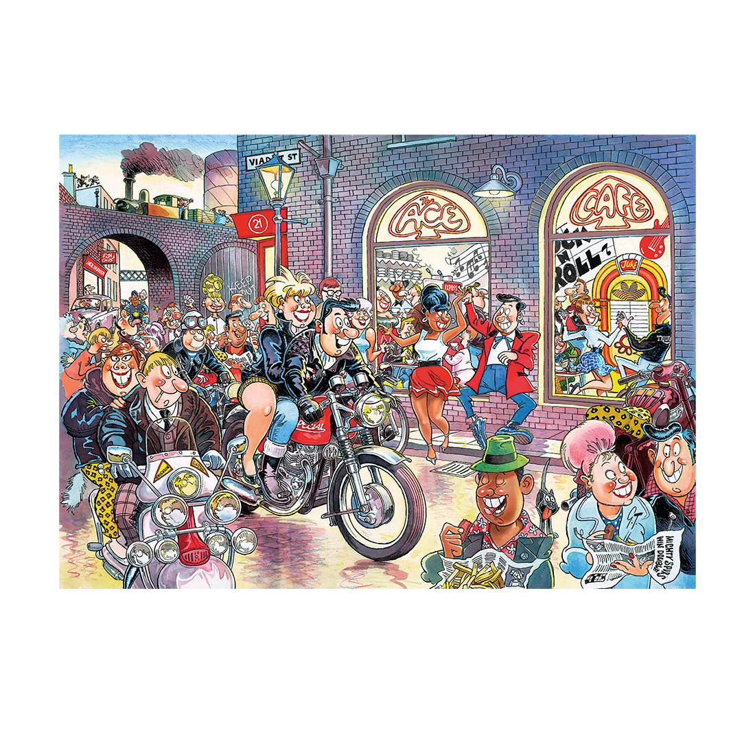 Jumbo - Rock around the Clock! This rocking image is from days gone by, but what does the future hold for these rock ‘n’ rollers? Will it be rock on or will it be rocking chairs? Try to imagine what has changed over the years; that is the view you have to puzzle.Don’t puzzle what you see, use your imagination and puzzle what will happen in the future!This addictive and unique puzzle concept is designed to keep the puzzler guessing right up until they have completed the puzzle and is the reason why Wasgij is the brand it is today. For more information, extra clues, offers and competitions, you can visit wasgij.com and enter the world of Wasgij.