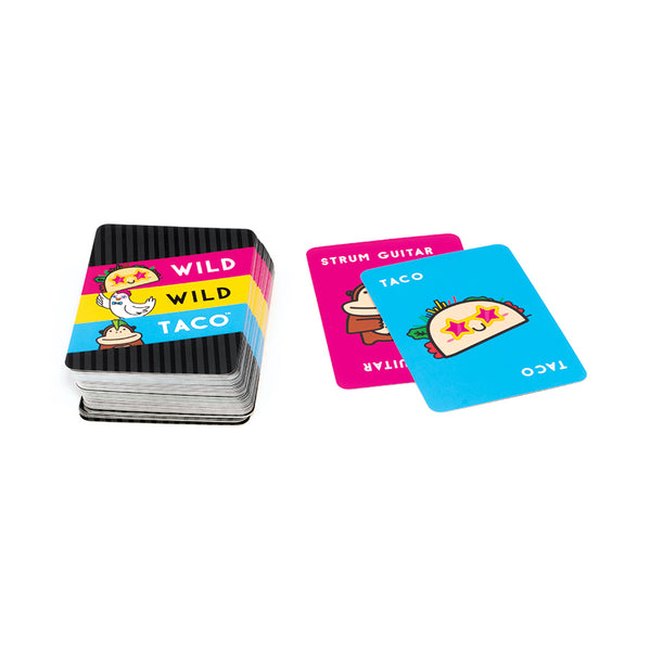 Players take turns flipping over their cards while saying, "Wild, Wild, Taco!" When a card played matches the one before it, everyone does the corresponding action and races to slap the pile. The first to get rid of all their cards wins!
