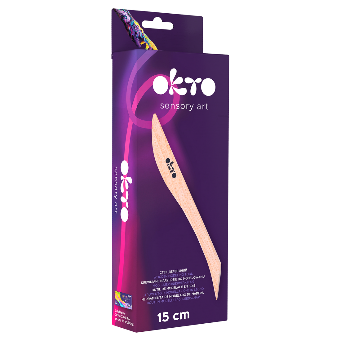 Oktoclay - The Wooden OKTO Modeling Stack is a lightweight, ergonomic sculpting tool designed for use with OKTO air-dry clay. Made from natural wood, it allows for detailed relief and texture creation on your artworks. Its elongated shape and comfortable grip facilitate precise movements, making it ideal for both beginners and experienced artists. This tool is particularly suited for modeling projects involving flowers, plants, or decorative objects with air-dry clay. Recommended for users aged 14 and above, it offers a tactile and immersive creative experience.
