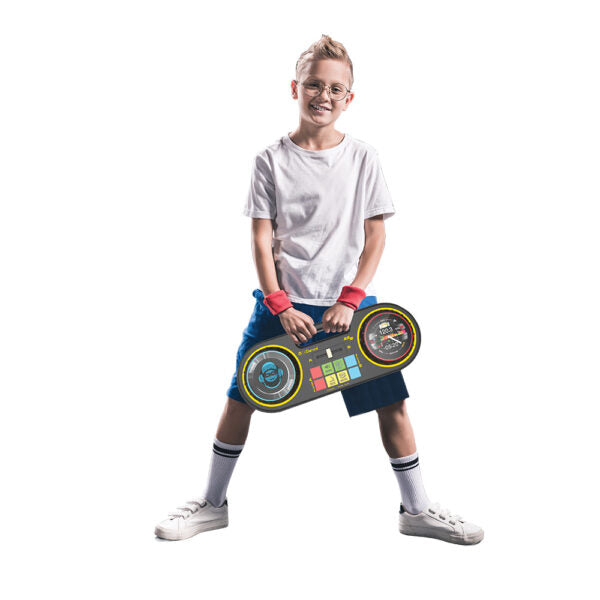 Includes DJ mixer with turntable, 2 drum pads, 2 music players, built-in crossfader to mix both music channels, 12 audio loops providing endless mixing combinations, integrated speaker and LED light effects.