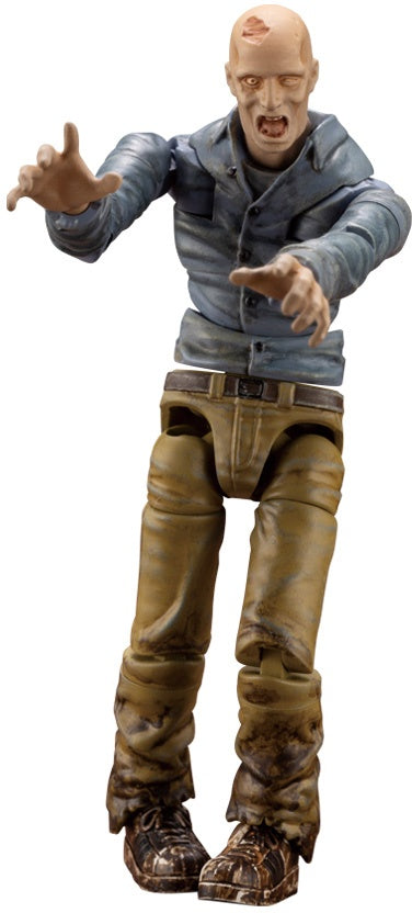 Kotobukiya's new "End of Heroes" lineup imagines a world where civilization and order have burned down to the ground, and the dead awaken to roam the Earth once more! This palm-sized lineup of action figure model kits launches with the Zombinoid Biter; these zombies have been observed to act in groups in search of human blood and flesh, attacking their prey with frightening power. This figure kit features 30 points of articulation for extreme posability, including specially adapted joints to make him capable of movement that a living person would be unable to do! A 3mm shaft hole is provided on his back to use a mini flying base (sold separately) to reproduce jumping scenes. He's also molded in four colors, so you can start using him for zombie-movie photo sessions immediately after assembly